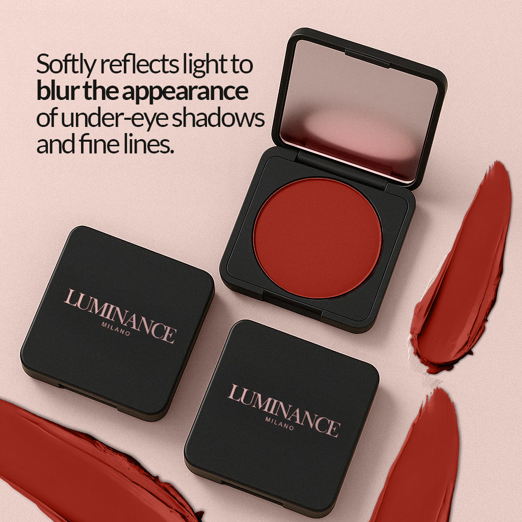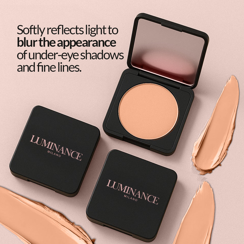 - Set: Let the formula absorb for a few seconds. For enhanced longevity and a crease-free look, lightly set with Luminance Milano’s Blurring Setting Powder using the Premium Puff.